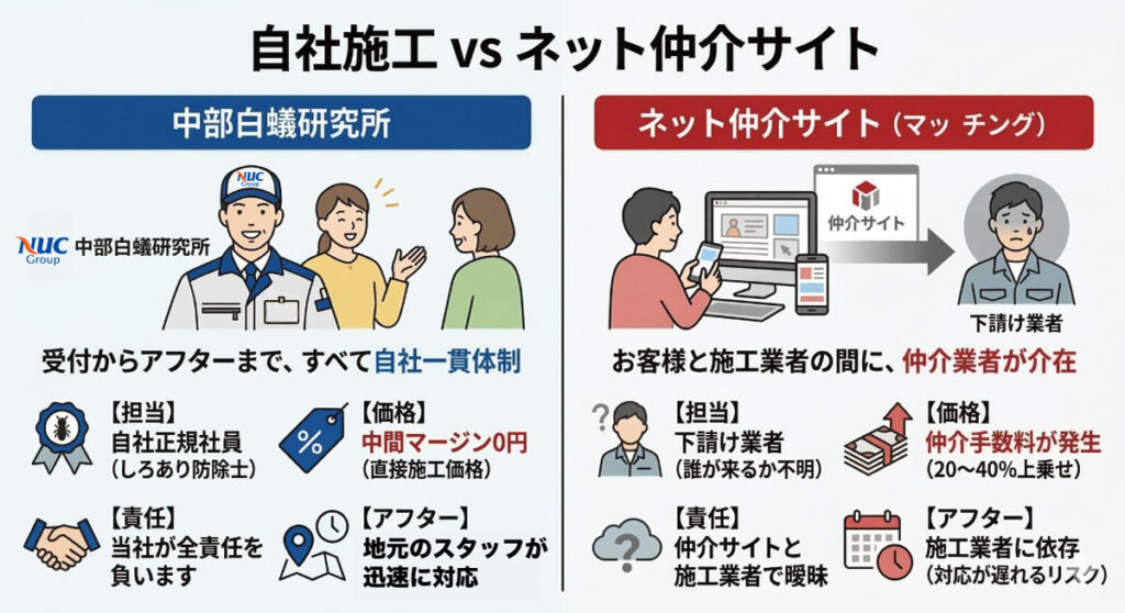 | 比較項目 | 中部白蟻研究所 (自社施工) |